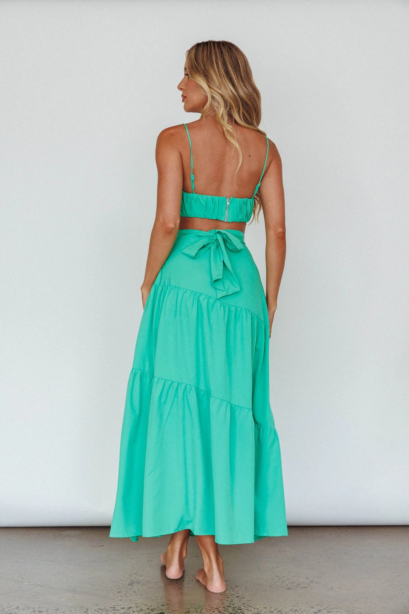 You’ll feel like packing your bags and escaping for the weekend in our pretty Bondi maxi skirt. Featuring a tie in the waist and flounce hem, it’s perfect for warm weekends at your fave lunch spot or strolling the vintage markets. Team it with its matching crop top to complete the look.