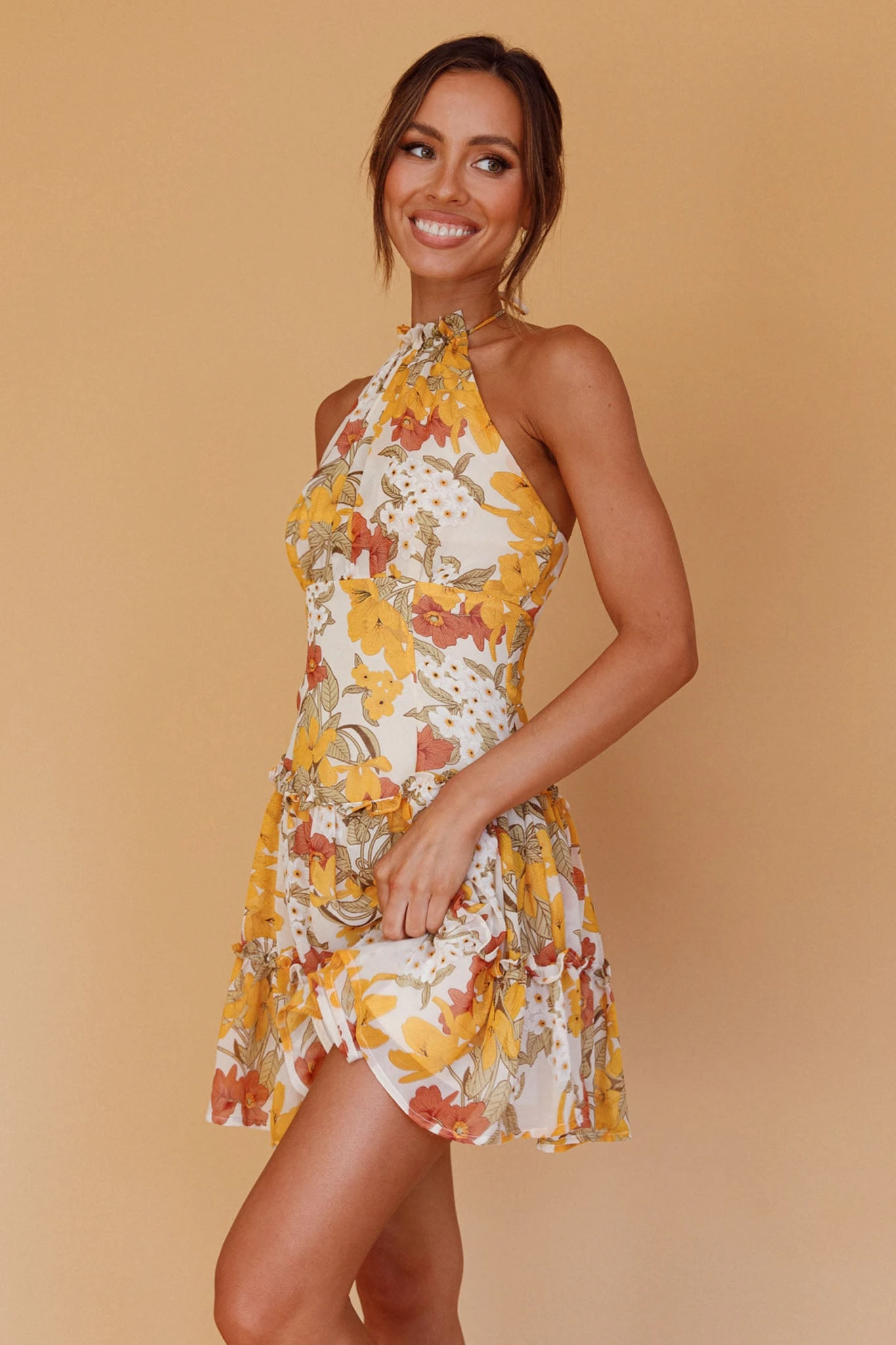 Breeze through the weekend in our pretty Nikayla mini dress. Featuring a halterneck and pretty, floral print. It’s perfect for happy hour with your girls teamed with tan mules and a tote. Super cute!