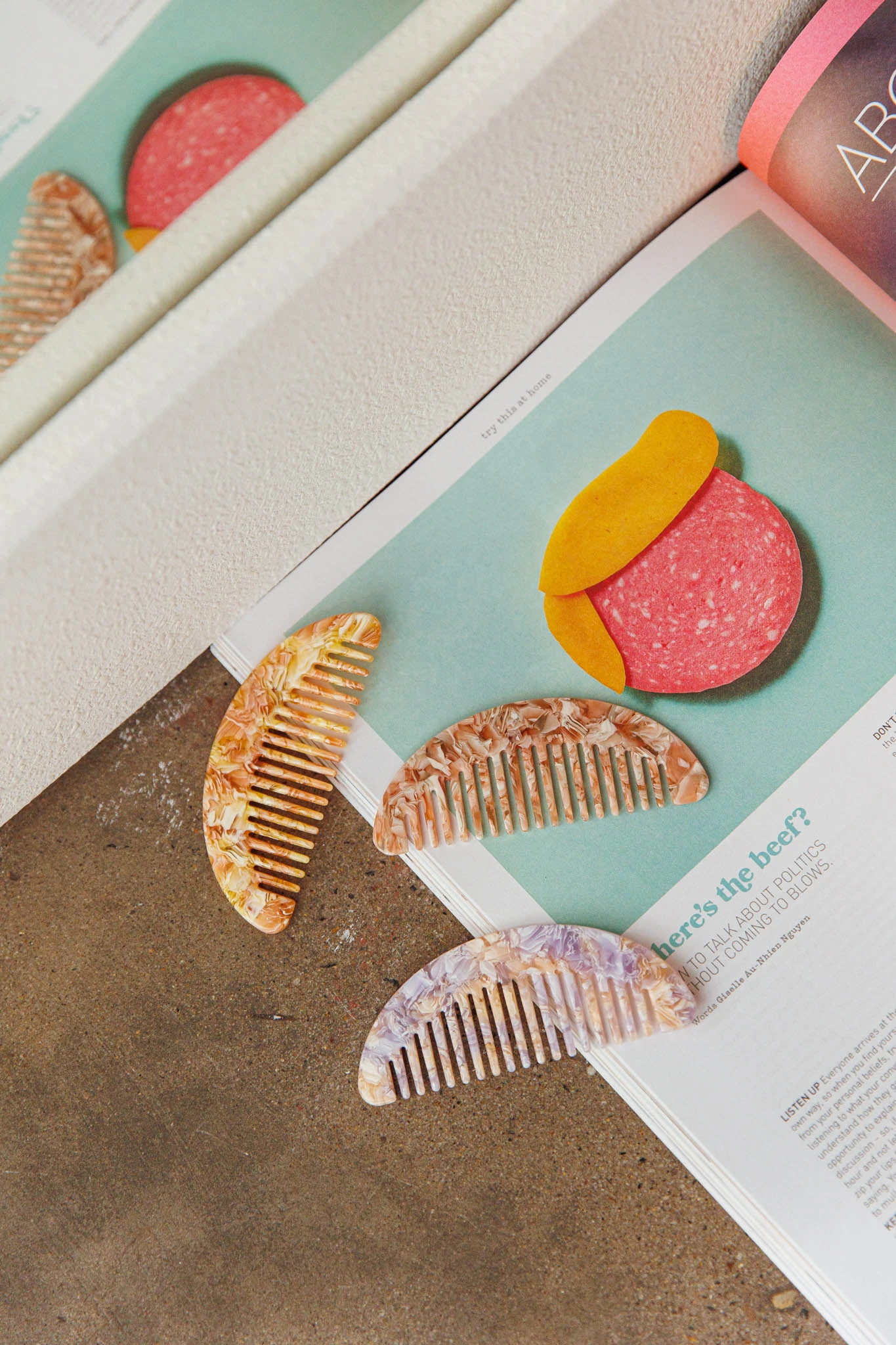 We’ve fallen head over heels for our pretty Jessie comb. Featuring wide, flat teeth and a polished, marble-look acetate, it will look super cute sitting on your vanity beside your fave jewels for the ultimate aesthetic!